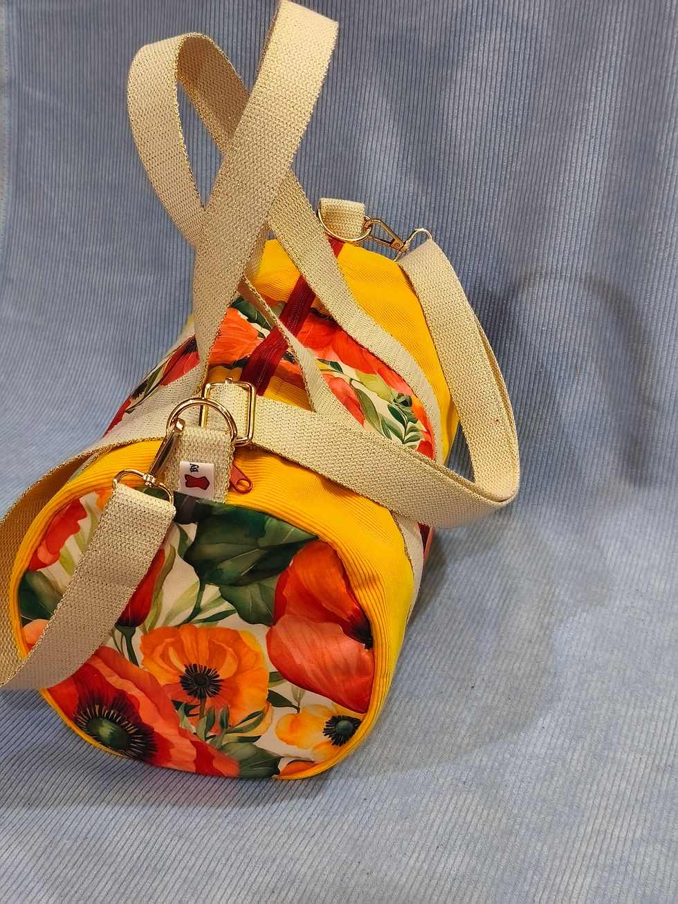 Sac polochon velours vert d'eau et fleurs de cerisier